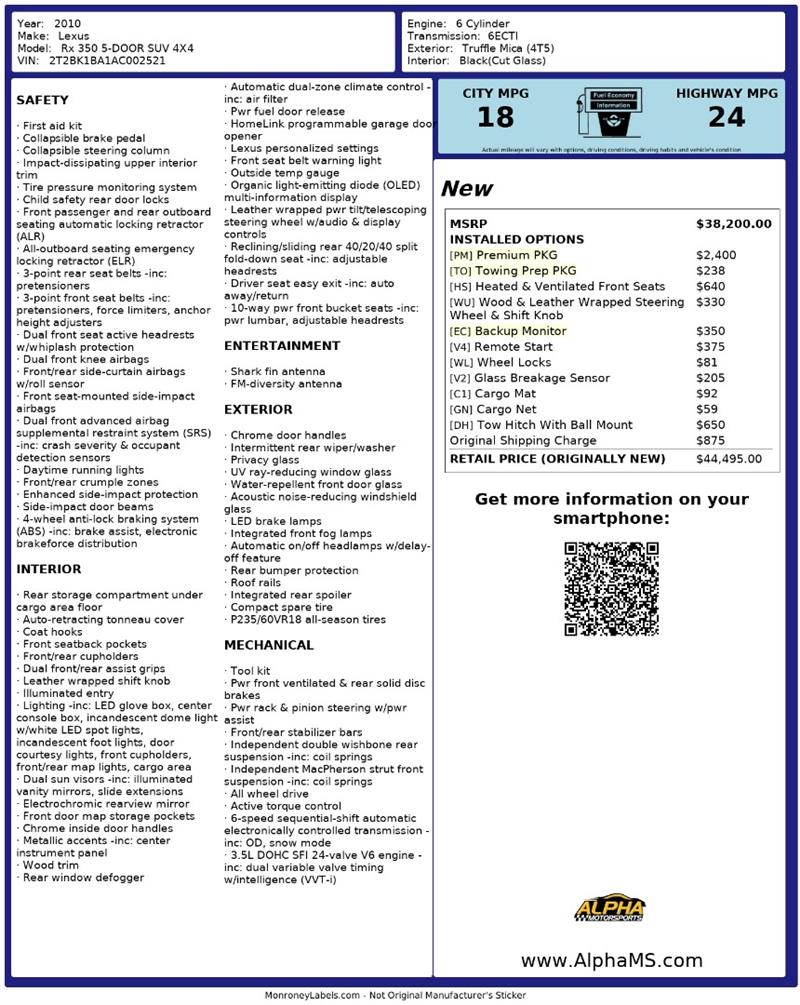 LEXUS RX 350 w/ Premium Package
