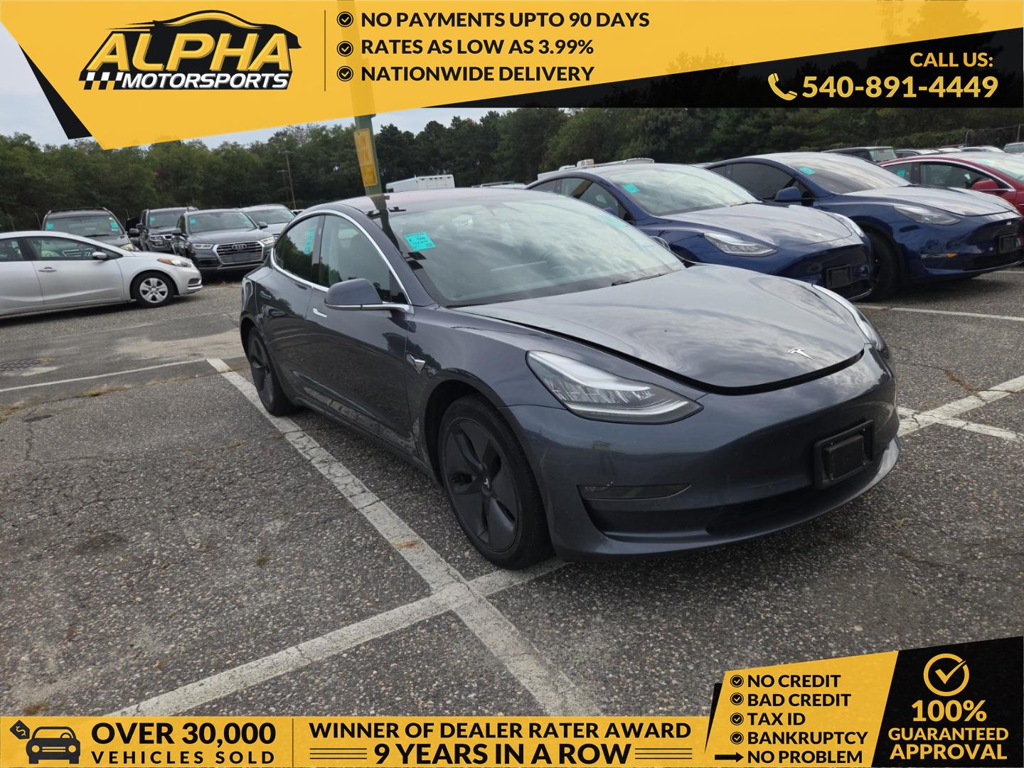 • ** SALE ** SALE ** SALE ** YOUR FIRST PAYMENT ON US AND NO PAYMENT FOR UP TO 90 DAYS ** 100+ TESLAS IN STOCK, visit www.AlphaMS.com to view our entire TESLA or other EV vehicles in our inventory, BEST PRICES IN TOWN** OVER 30,000 VEHICLES SOLD, TWO LOCATION TO SERVE YOU, 400+ VEHICLES IN STOCK ** NATIONWIDE DELIVERY AVAILABLE ** FINANCE RATES AS LOW AS 3.9% AND SPECIALS ON EXTENDED WARRANTY THROUGH OUR FINANCING AND UP TO 110% OF KBB TRADE-IN VALUE FOR TRADES** Special internet pricing is based on deducting all advertised discounts, military, government employee, student, and VA resident, as well as a one-time payment of cash, certified funds, money order, and EFTs. We offer Virtual test drives and virtual walk-in. BUY WITH CONFIDENCE. Winner of Dealerrater.com “CONSUMER SATISFACTION AWARD” 13 years in a row. PROUD MEMBER OF CAPITAL ONE , WELLS FARGO, CHASE AUTO FINANCE, USAA, TRUECAR, CREDIT ACCEPTANCE, SECU, VIADA, LANGLEY, DEALERRATER.COM AND A LOT MORE.  Alpha Motorsports makes every effort to provide the most accurate information about a vehicle. Some of the options and equipment listed on the window sticker or on our website / 3rd party websites may not be available on the vehicle, please contact your sales associate to confirm vehicle options and packages with you. Alpha Motorsports is not responsible for any open recalls, please visit "www.nhtsa.gov/recalls" to determine whether there is an open recall on this vehicle. Alpha Motorsports is not responsible for any voided manufacturer warranty due to previous accidents/damages, auction announcements, lack of maintenance or the previous owner's negligence, please contact the manufacturer or manufacturer's representative to verify or/and confirm the warranty. We are not responsible for any changes to TESLA's or other manufacturer software or hardware changes after the purchase of the vehicle due to an update from the manufacturer. Nationwide deliveries are with our partnered company, Central Dispatch, and our customers automatically qualify for the best shipping quote out there. Your salesperson can assist you with the shipping quote or any other questions or concerns. All vehicles sold are subject to a $1,795 dealer processing fee, not required by law. Buyers are responsible for all federal, state, county and city taxes and fees. We reserve the right to end this listing at any time should the vehicle no longer be available for sale and the price expires at the end of the business day. We reserve the rights to decline funds from certain lenders, banks, credit unions, etc. First payment cannot exceed $400 and must be financed with one of our approved lender(s). FOR NO PAYMENT FOR 90 DAYS Must be approved with one of our lender(s) who participates in this program.