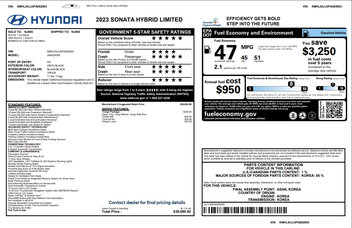 Fees and Taxes: The price does not include taxes, title, license, dealer processing fee, & finance charges. Buyers are accountable for all state, county, and city taxes, along with dealer fees, as well as title/registration fees applicable to the state where the vehicle will be registered.