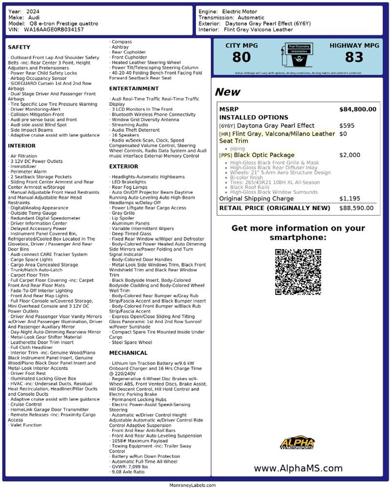 • ** OVER 30,000 VEHICLES SOLD, TWO LOCATION TO SERVE YOU, 400+ VEHICLES IN STOCK, visit www.AlphaMS.com to view our inventory, BEST PRICES IN TOWN ** NATIONWIDE DELIVERY AVAILABLE ** FINANCE RATES AS LOW AS 3.9% AND SPECIALS ON EXTENDED WARRANTY THROUGH OUR FINANCING AND UP TO 110% OF KBB TRADE-IN VALUE FOR TRADES** ORIGINAL STICKER PRICE WAS $88K, SEE PHOTO # 3 FOR COPY OF THE ORIGINAL STICKER** Special internet pricing is based on deducting all advertised discounts, military, government employee, student, and VA resident, as well as a one-time payment of cash, certified funds, money order, and EFTs. Total prices on vehicles financed may vary. We offer Virtual test drives and virtual walk-ins. BUY WITH CONFIDENCE. Winner of Dealerrater.com “CONSUMER SATISFACTION AWARD” 13 years in a row. PROUD PARTNER OF CAPITAL ONE , WELLS FARGO, CHASE AUTO FINANCE, USAA, TRUECAR, CREDIT ACCEPTANCE, SECU, LANGLEY, VIADA, DEALERRATER.COM AND A LOT MORE.  Alpha Motorsports makes every effort to provide the most accurate information about a vehicle. Some of the options and equipment listed on the window sticker or on our website / 3rd party websites may not be available on the vehicle, please contact your sales associate to confirm vehicle options and packages. Alpha Motorsports is not responsible for any open recalls, please visit "www.nhtsa.gov/recalls" to determine whether there is an open recall on this vehicle. Alpha Motorsports is not responsible for any voided manufacturer warranty due to previous accidents/damages, auction announcements, lack of maintenance or the previous owner's negligence, please contact the manufacturer or manufacturer's representative to verify or/and confirm the warranty. We are not responsible for any changes to TESLA's or other manufacturer software or hardware changes after the purchase of the vehicle due to an update from the manufacturer. Nationwide deliveries are with our partnered company, Central Dispatch, and our customers automatically qualify for the best shipping quote out there. Your salesperson can assist you with the shipping quote or any other questions or concerns. All vehicles sold are subject to a $1,795 dealer processing fee, not required by law. Buyers are responsible for all federal, state, county and city taxes and fees. We reserve the right to end this listing at any time should the vehicle no longer be available for sale and the price expires at the end of the business day. We reserve the rights to decline funds from certain lenders, banks, credit unions, etc.