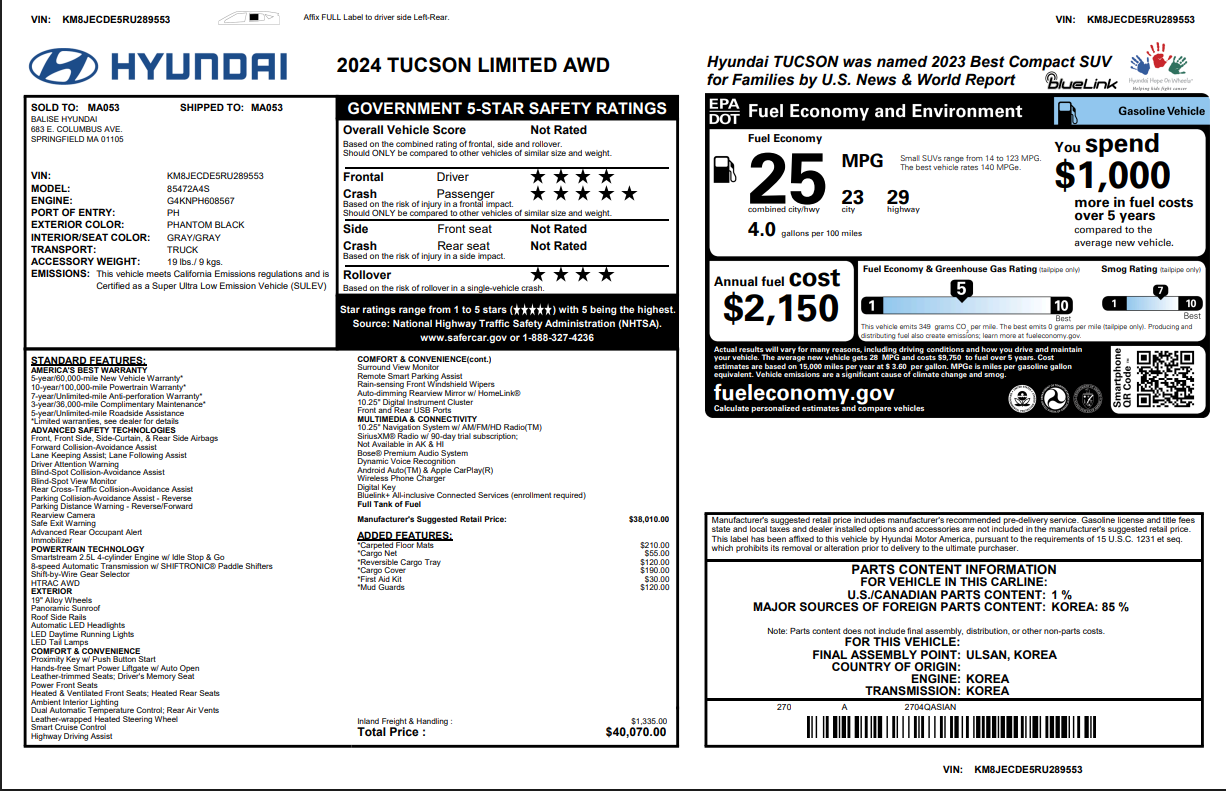 Fees and Taxes: The price does not include taxes, title, license, dealer processing fee, & finance charges. Buyers are accountable for all state, county, and city taxes, along with dealer fees, as well as title/registration fees applicable to the state where the vehicle will be registered.
