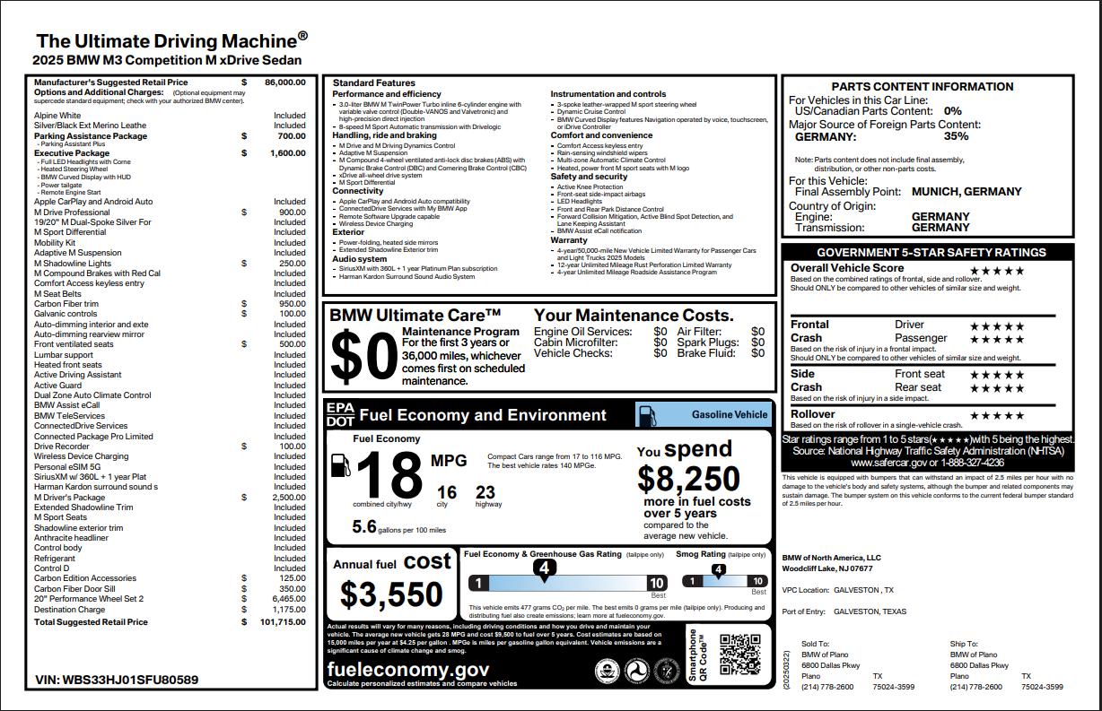 Fees and Taxes: The price does not include taxes, title, license, dealer processing fee, & finance charges. Buyers are accountable for all state, county, and city taxes, along with dealer fees, as well as title/registration fees applicable to the state where the vehicle will be registered.