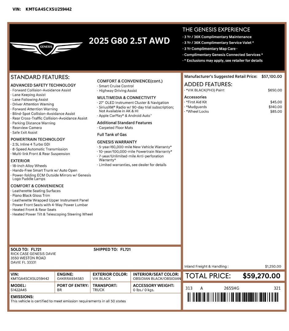 Fees and Taxes: The price does not include taxes, title, license, dealer processing fee, & finance charges. Buyers are accountable for all state, county, and city taxes, along with dealer fees, as well as title/registration fees applicable to the state where the vehicle will be registered.