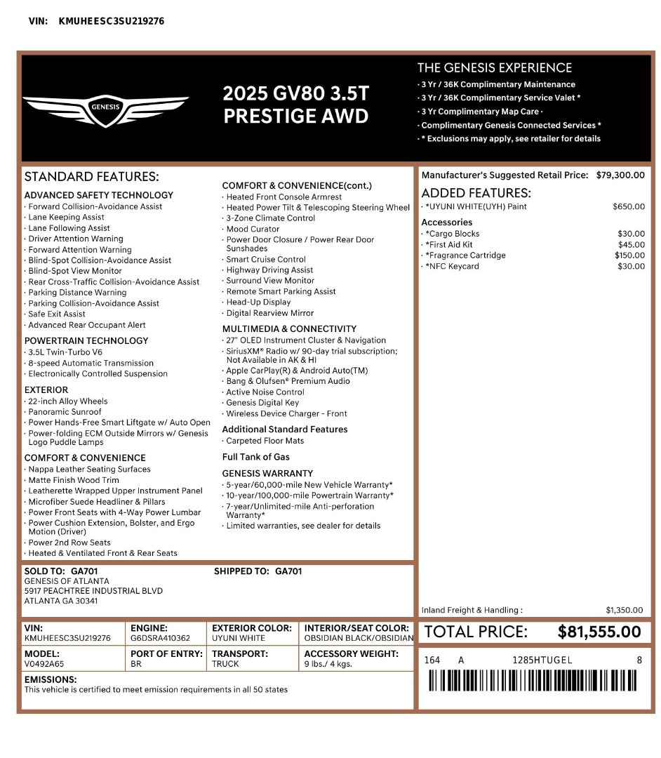 Fees and Taxes: The price does not include taxes, title, license, dealer processing fee, & finance charges. Buyers are accountable for all state, county, and city taxes, along with dealer fees, as well as title/registration fees applicable to the state where the vehicle will be registered.